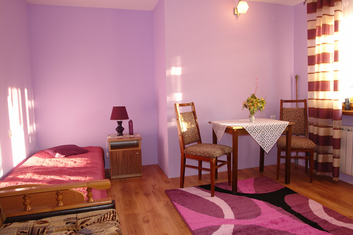 Oferujemy pokoje 2-, 3-, 4-osobowe o różnym standardzie, z TV i Internetem.